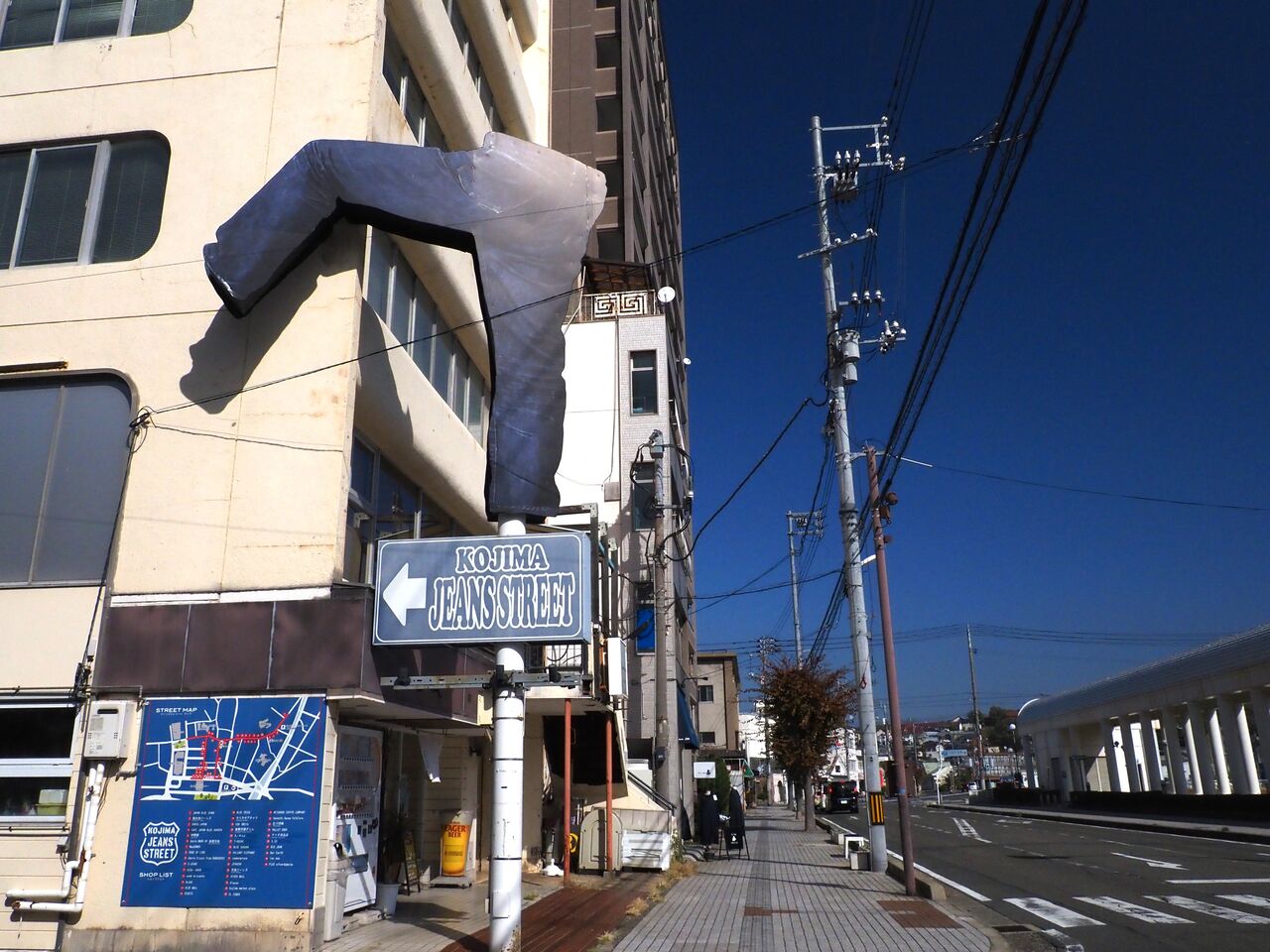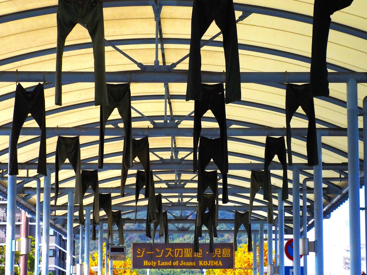 児島駅から外に出ると、いきなり沢山の黒っぽいジーンズがぶら下がっていて、予備知識のない人には異様な光景に見えるかもしれません。