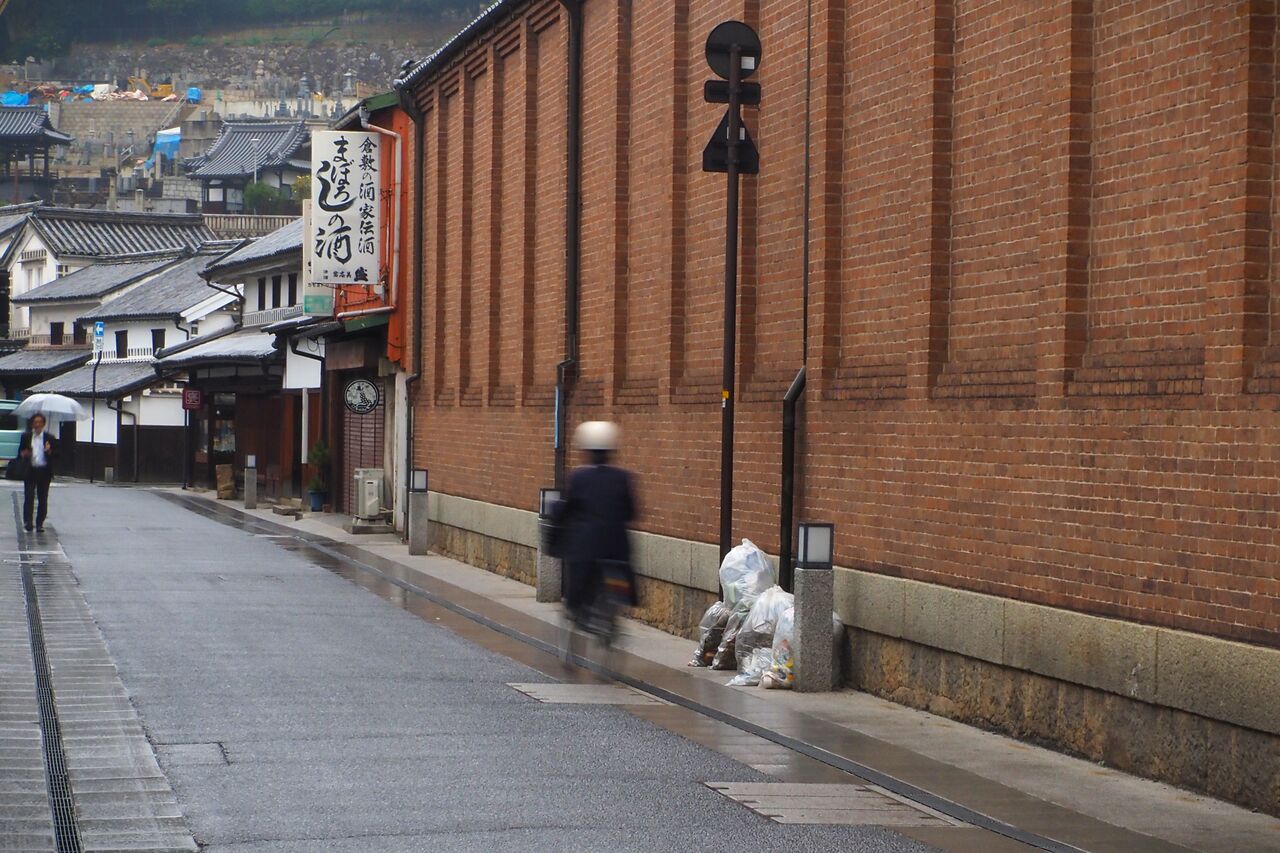 突き当たりが美観地区ですが、この写真は小雨の翌朝散歩に撮りました。