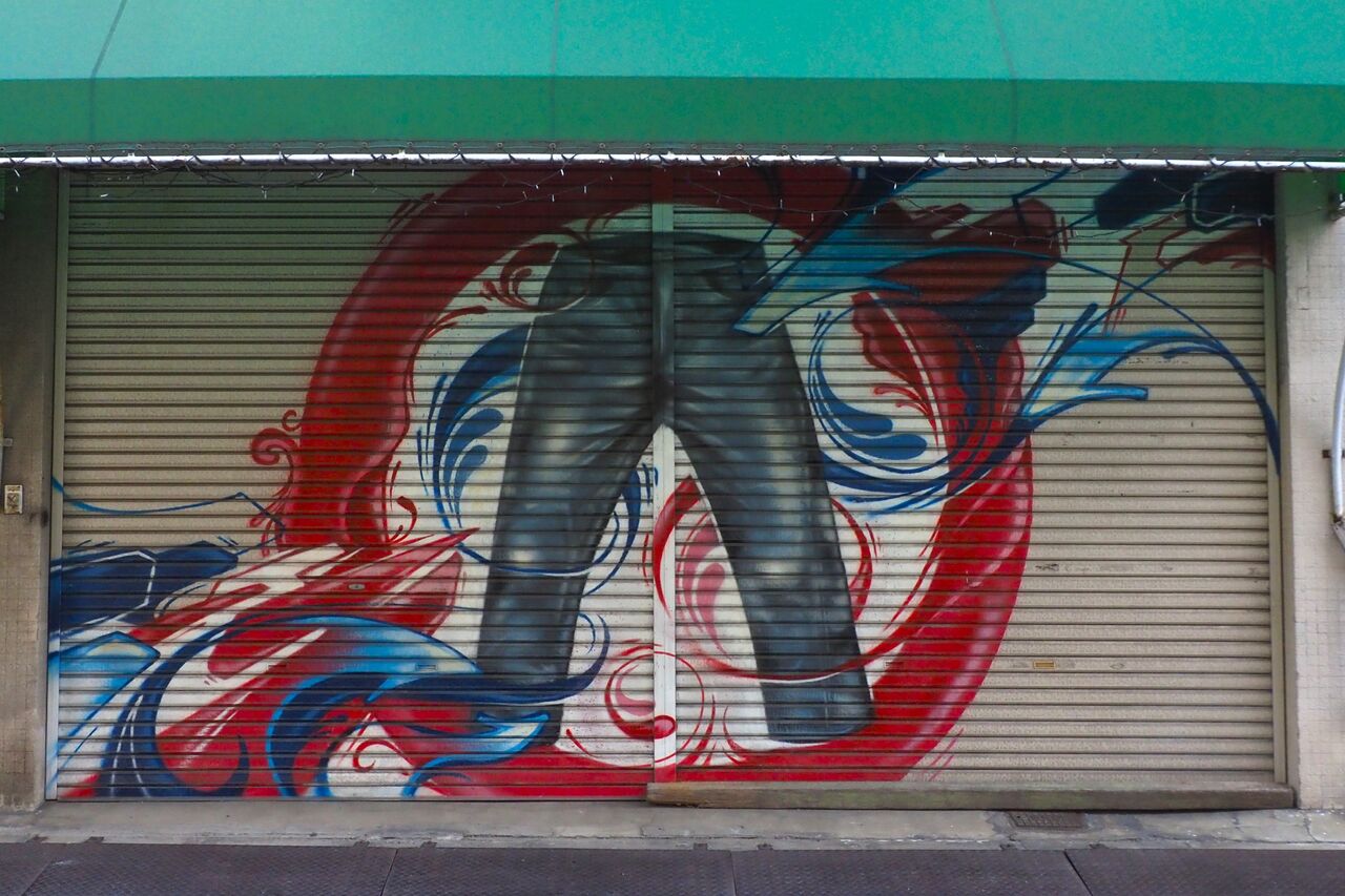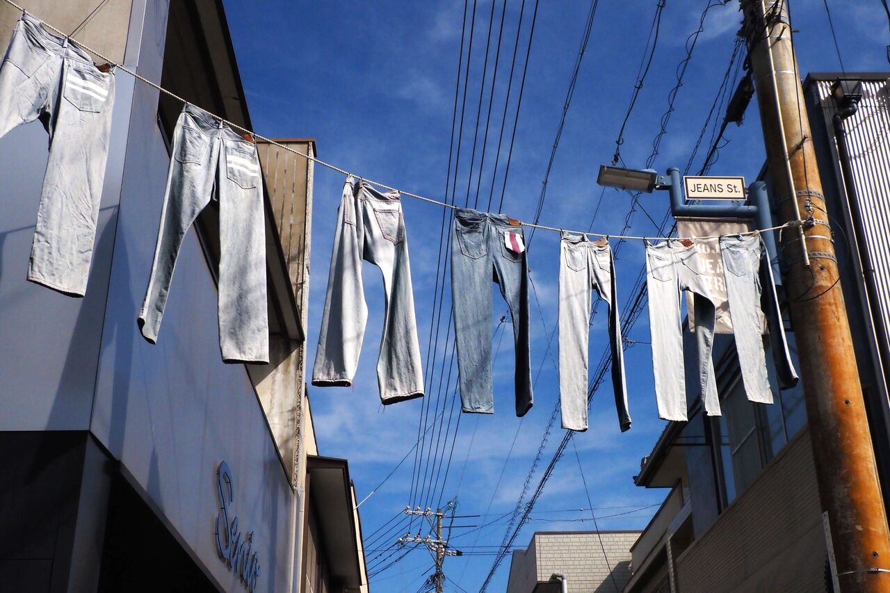 ストリートには数カ所、このように洗いざらしの洗濯物を干すようにジーンズが風に揺られてぶーらぶらと吊り下げられています。