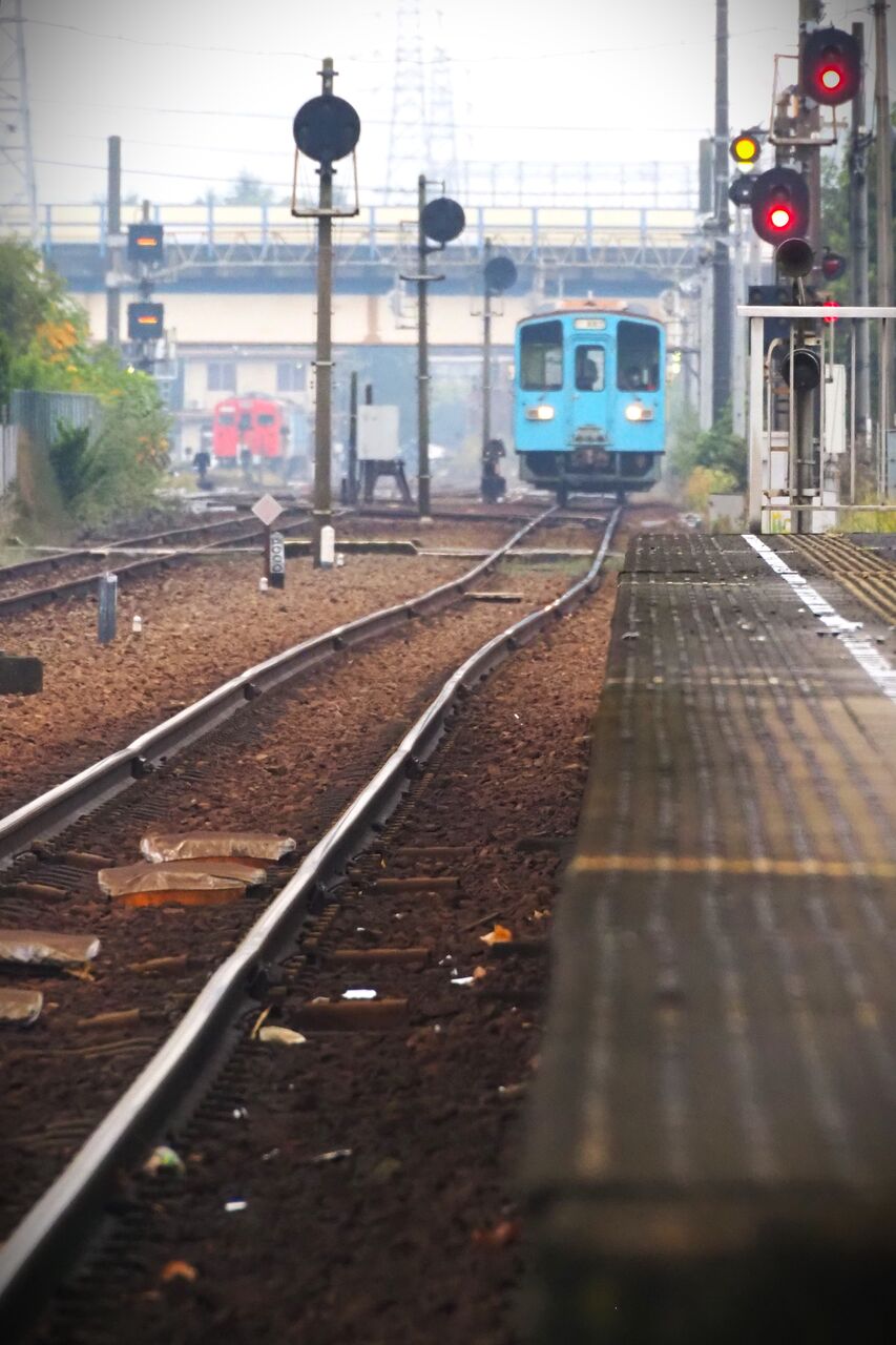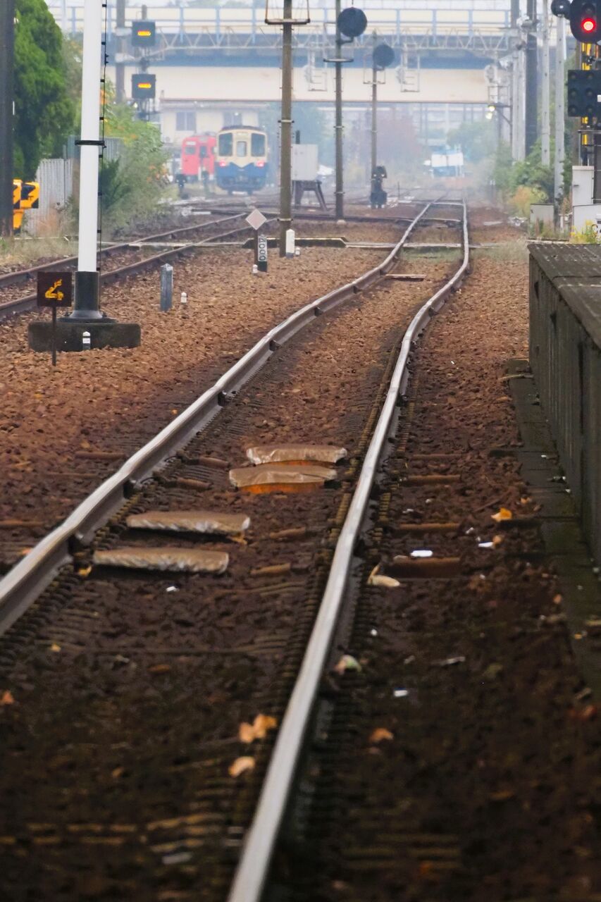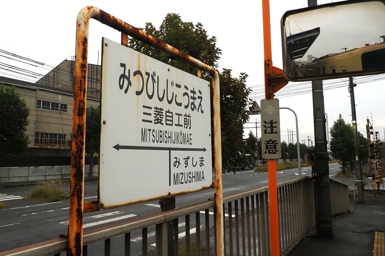 人の終着駅は三菱自工前ですが、線路はその手前から分かれて、一つは貨物線もう一つはこの終点駅の先の倉敷貨物ターミナル駅(車両基地)へと延びています。