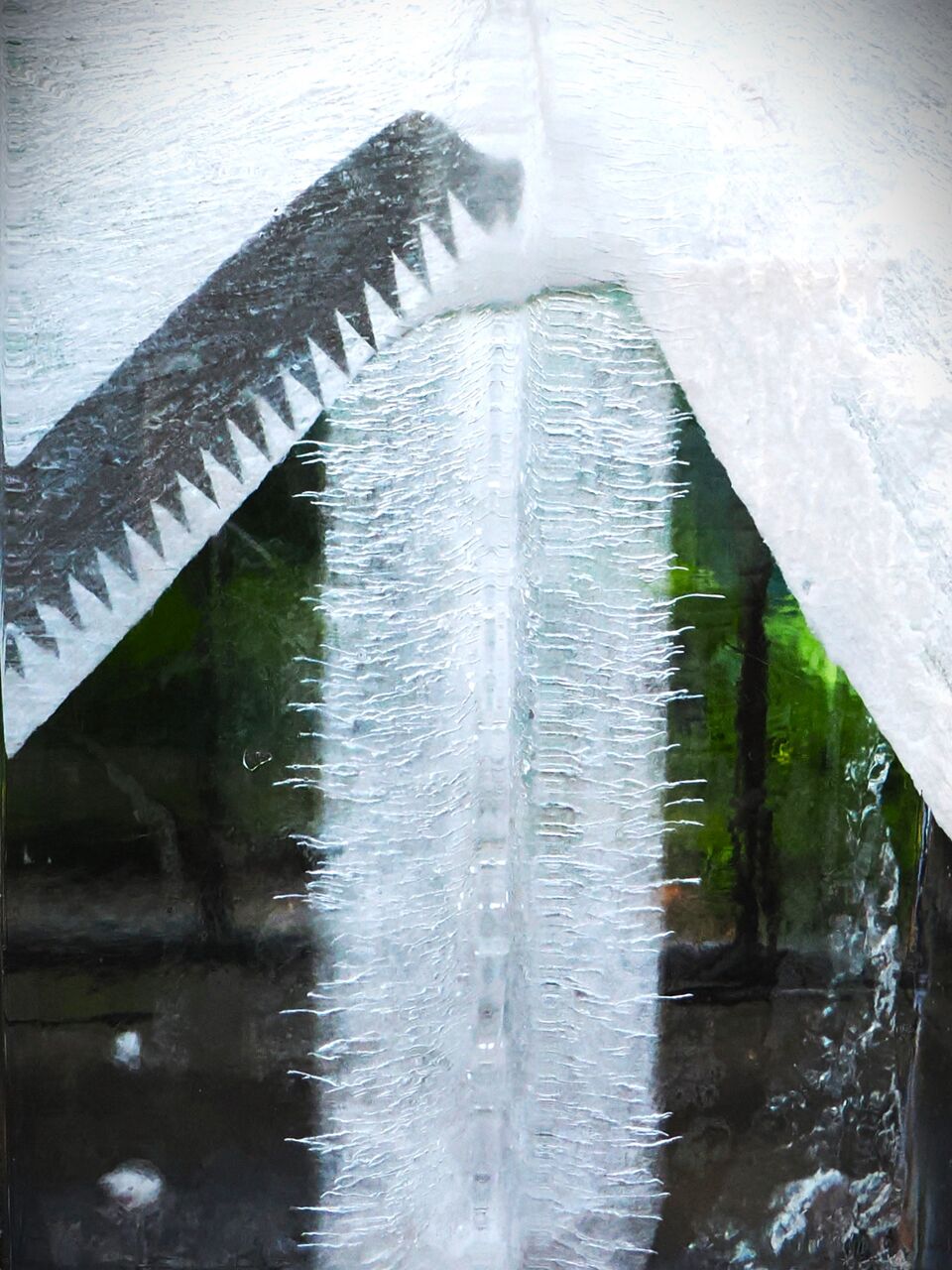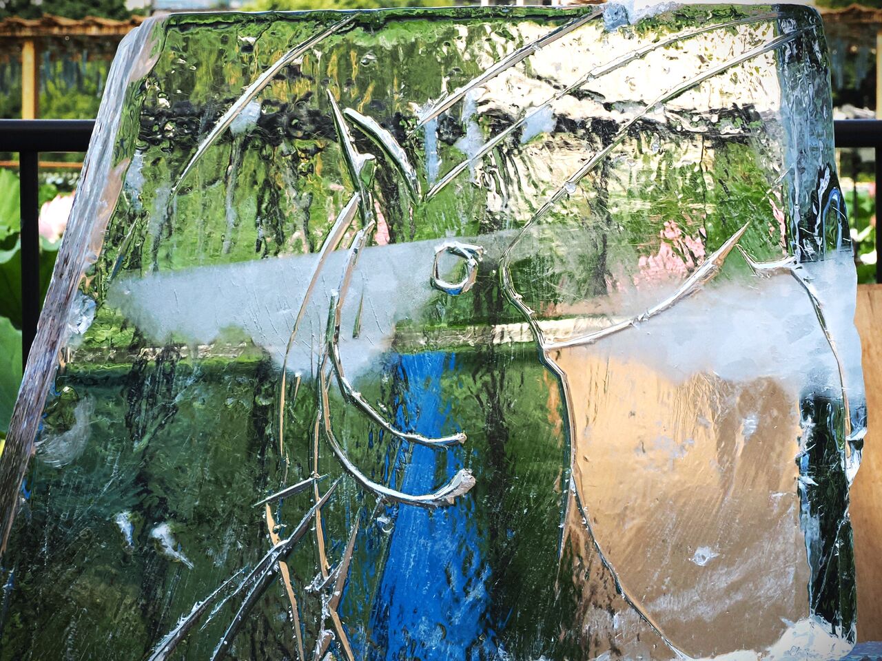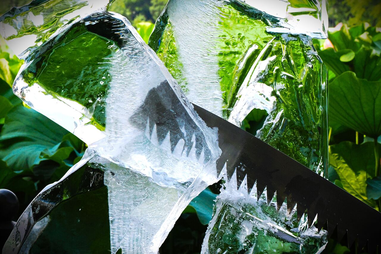 このノコギリがだんだん氷の中に入っていくと、いろいろインスタ映えする光景が現れます。