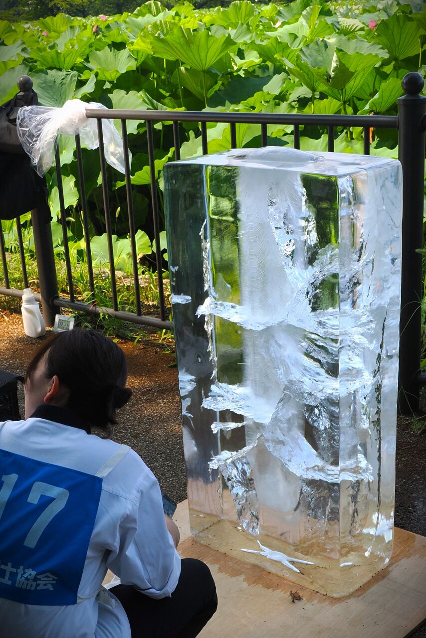 上野公園では今月2回目の氷の彫刻大会がありました。主催者は違うようですが「夏のビーチにかき氷」みたいに誘惑されて、撮りに行ってみたのでした。