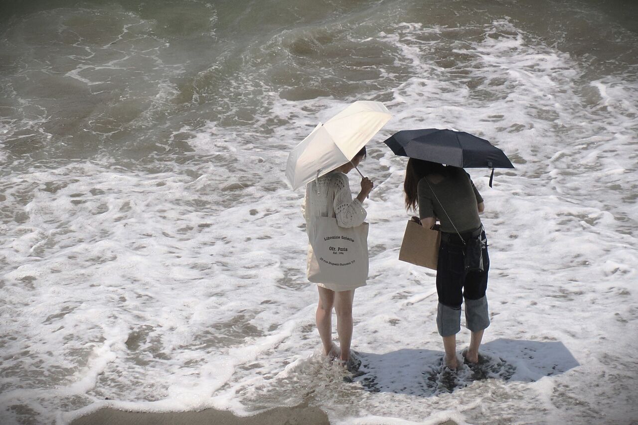 どうも女性というものは海に行くと、足を水に漬けたがる習性のようなものがあるのでしょうか?
