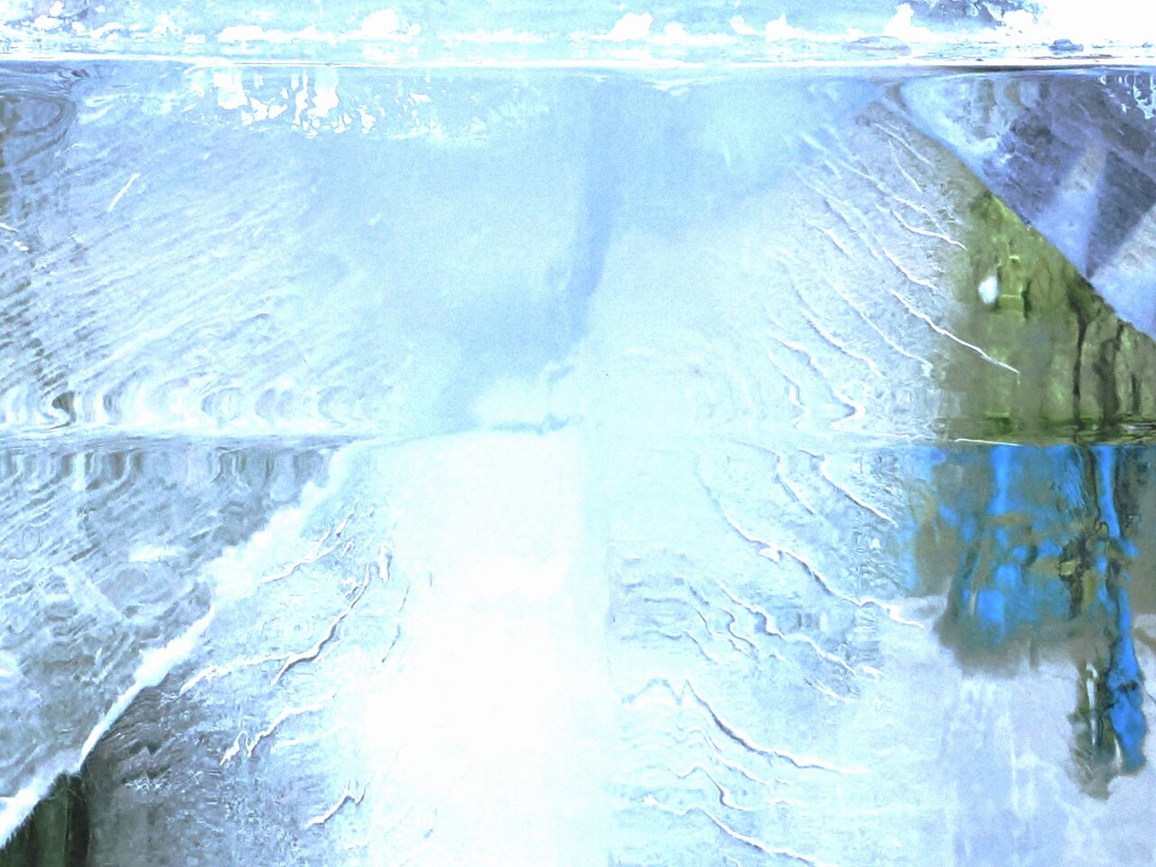 朝から暑かったので、氷柱を透かした光景で涼を感じてください。