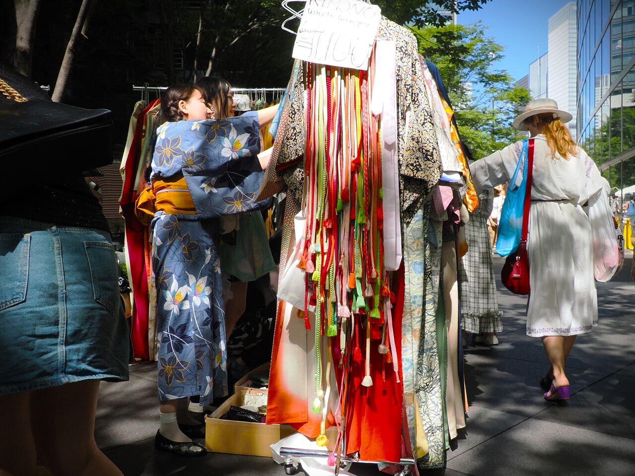 京都の弘法さんや天神さんでもそうですが、やはり外人さんの一番人気は古着の着物です。