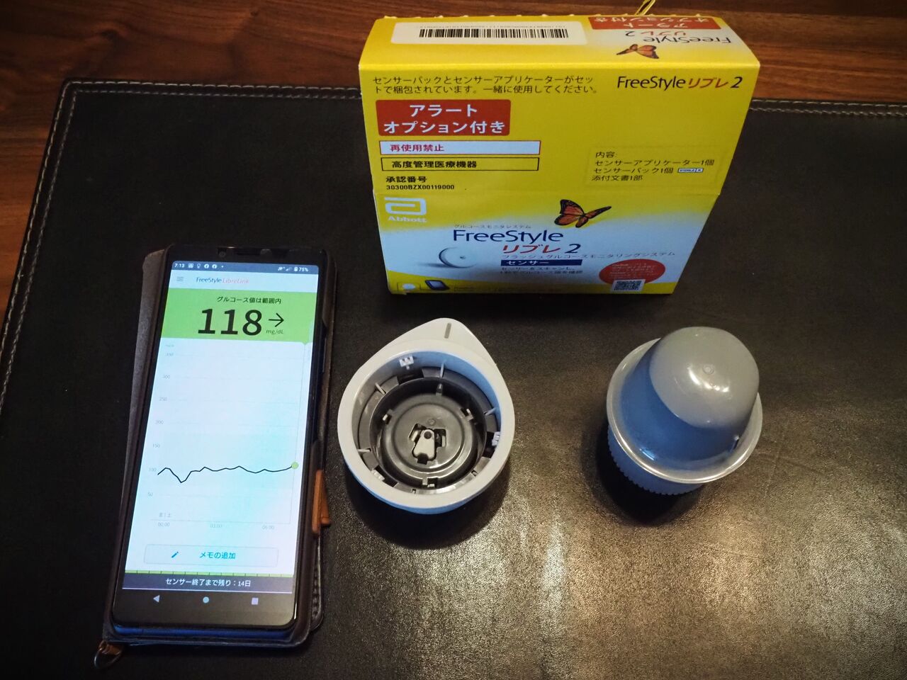 一昨日の夜から腕に針を刺して、14日間リアルタイムで血糖値の測定開始。