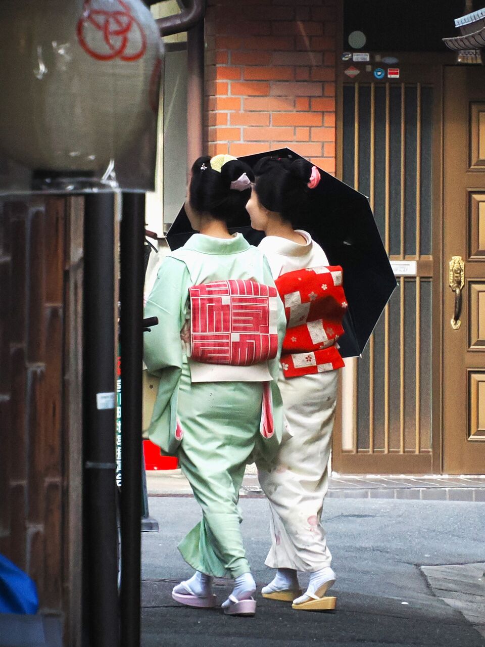 細い路地の置屋から二人連れ立って出てきました。