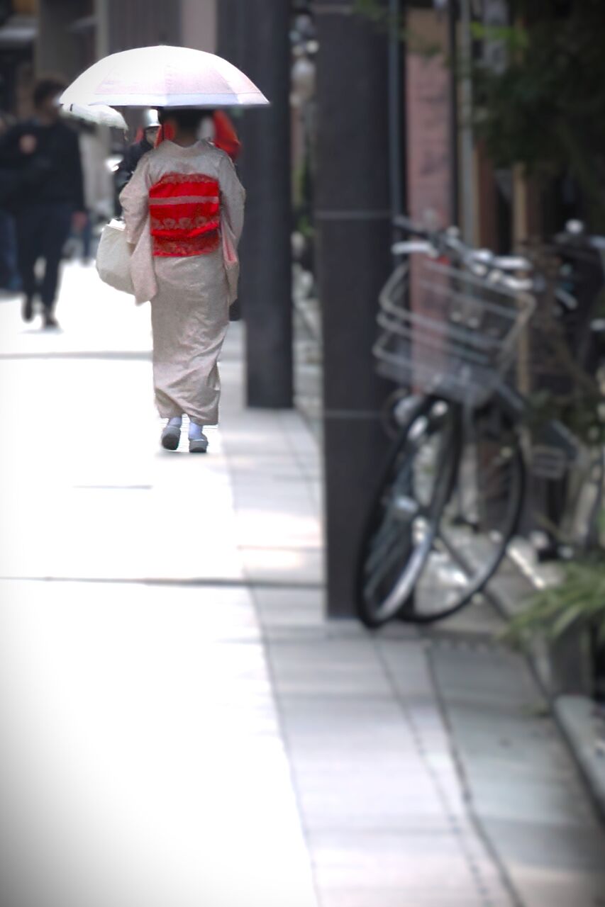 五花街の中でも西陣の上七軒や鴨川沿いの宮川町は、昼間でもそう人通りは多くなくて、舞妓芸妓さんが普段着の着物で歩いたりしているのを見ることができます。