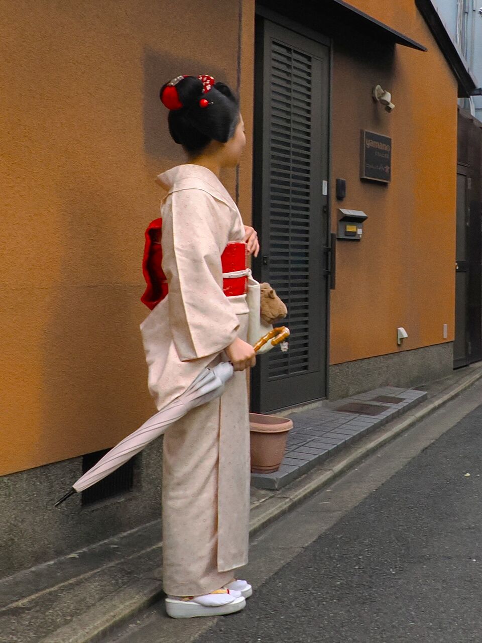 この舞妓さんは誰かと待ち合わせみたいですね。
