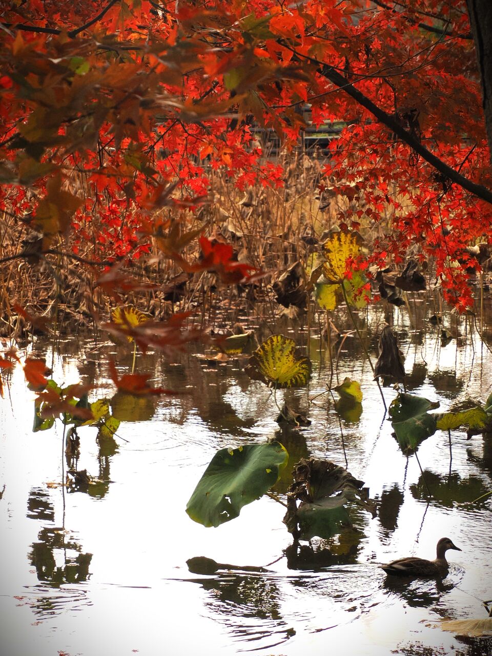 もっと枯れてくると葉が朽ち落ちて、茎が色々な形を水面に反射して、探すと面白い写真になったりするのですが、まだそこまでいきません。