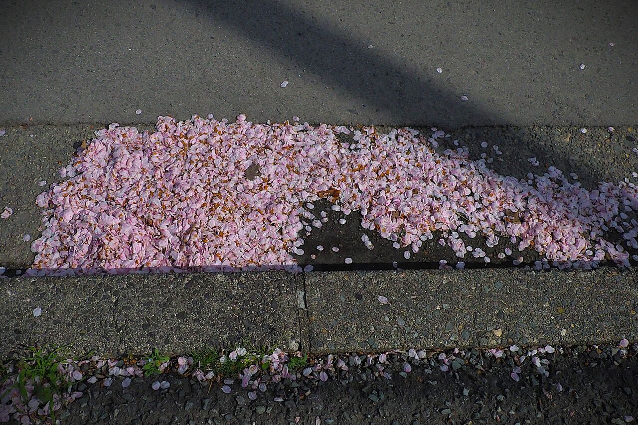 ところどころには箒で集めたわけでもないのに、桜の吹き溜まり。