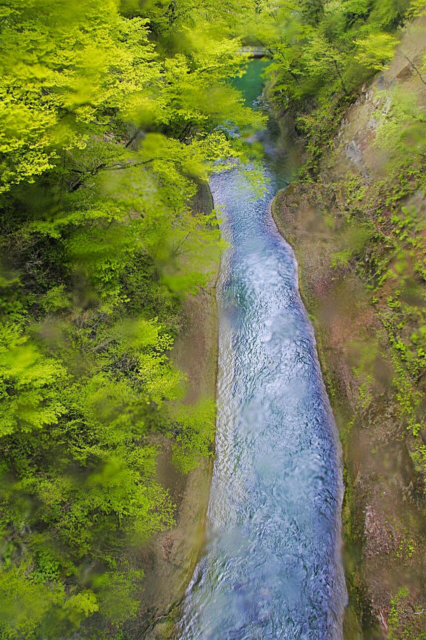 撮影地は、たぶん宮城県の定義如来の手前の橋の上から下の渓谷を撮ったものだと思います。
