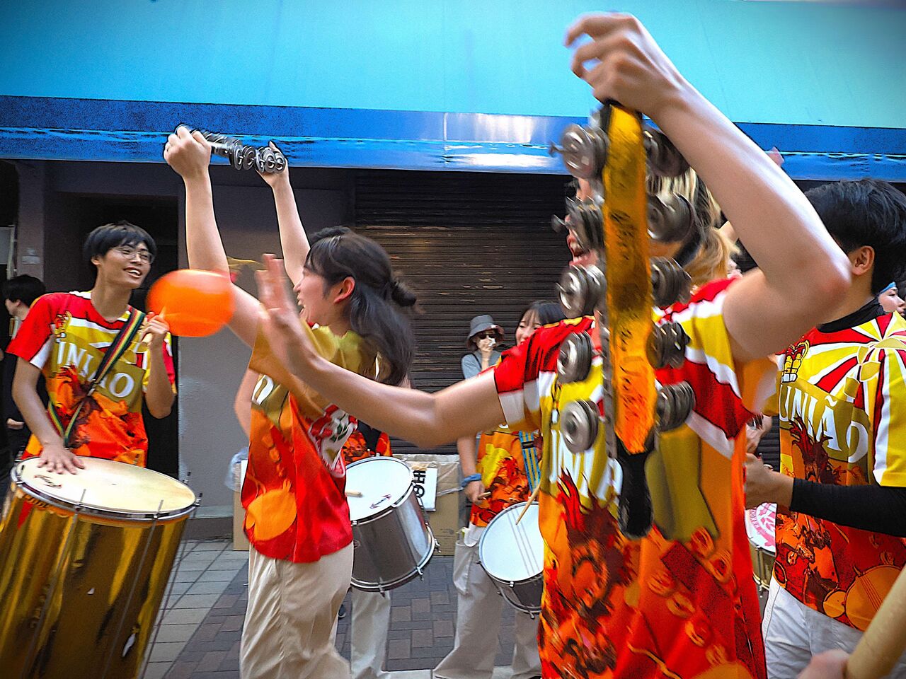 様々な打楽器を中心に、大音響でサンバチームの心臓部です。