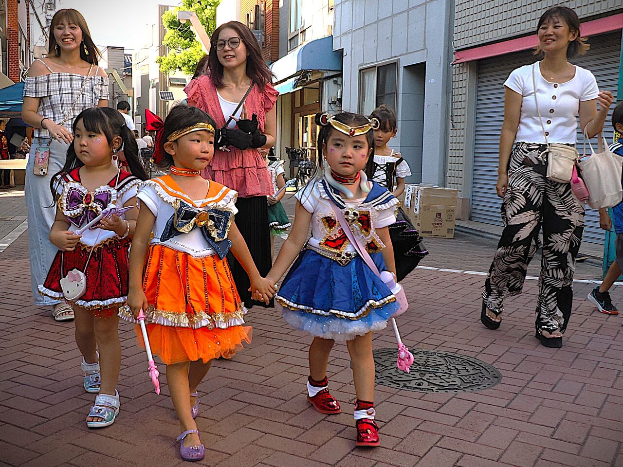 ママ友とその子供たちが、セーラームーンのコスプレで闊歩しています。