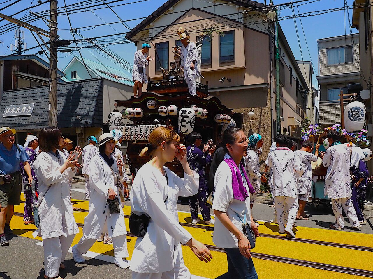 この日は山車が巡行する為、この通りは電車以外は通行止めです。