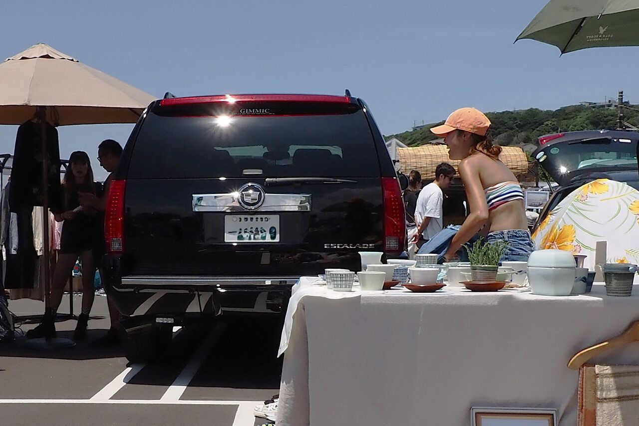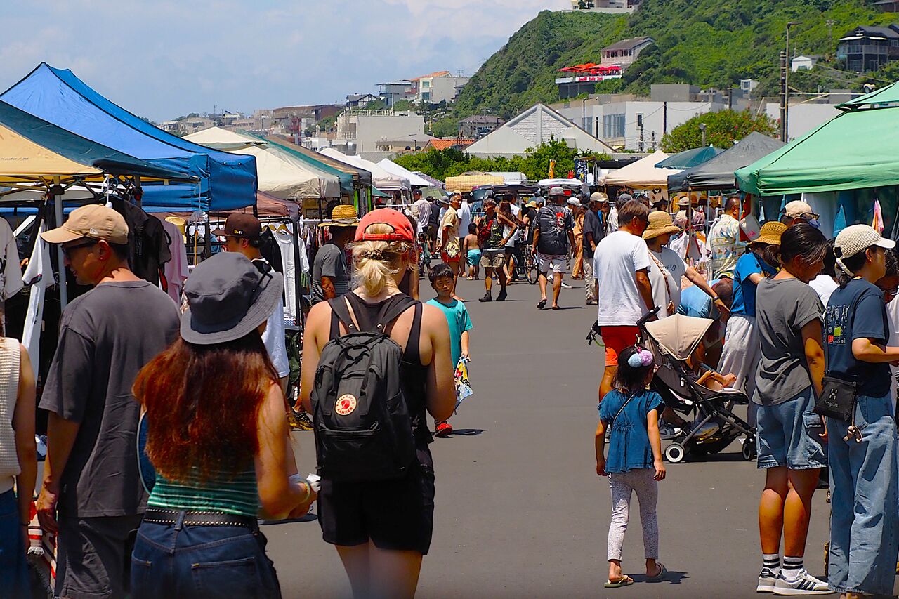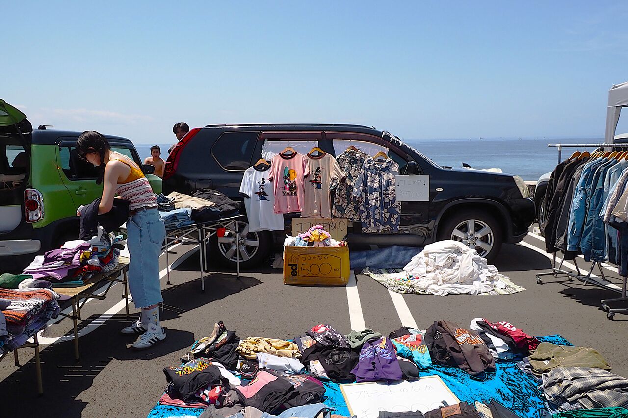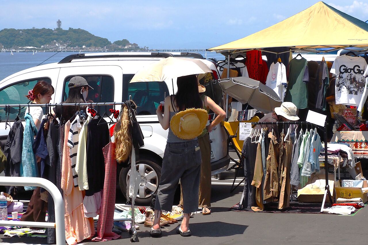 いかにもフリマの雰囲気で、この位置からカメラをもう少し左に振れば江の島が見えます。
