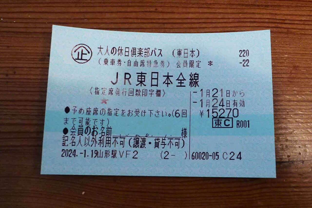 昨日、JR東日本大人の休日倶楽部4日間パスを買ってきました。