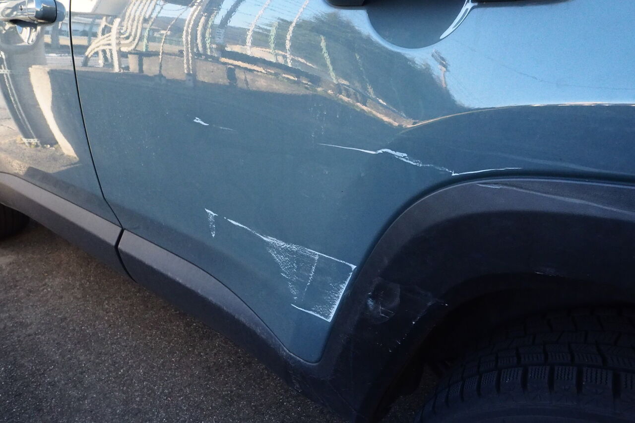 昨日は珍しく穏やかな大寒の日でしたが、100円ショップのダイソーでちょっと買い物をして、家に戻ったら左後ろのドアのところに広い擦り傷が付いているではありませんか。