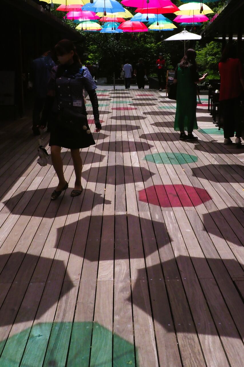 軽井沢のハルニレテラスのアンブレラスカイが去年で終了して、オーガニックウィンドという草木染の布がヒラヒラのイベントをしているようです。