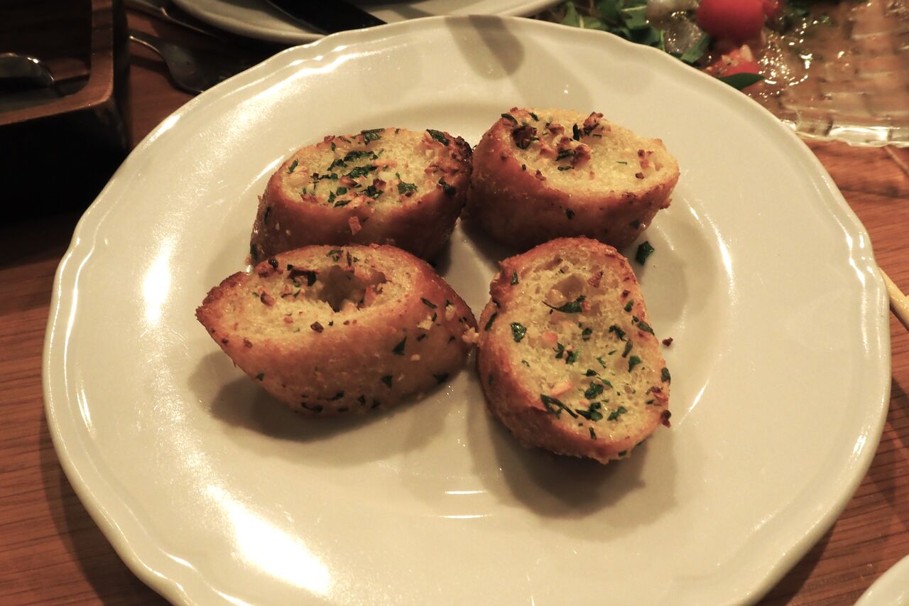 写真のガーリックトーストが美味かった。