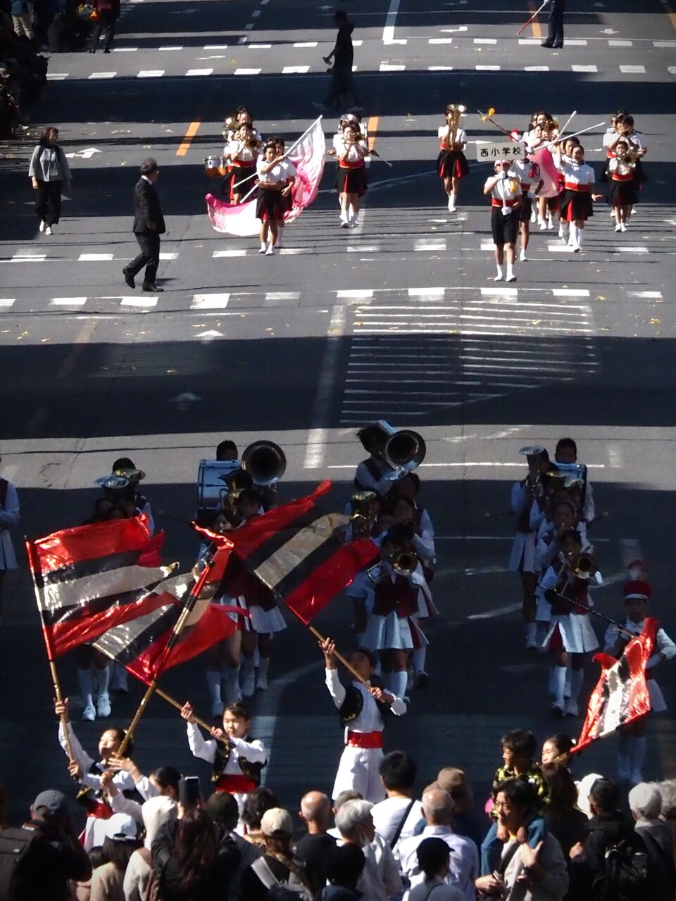 世の中少子化の中、各校とも編成人数が少ないので、広い道路では各自の間隔が開き過ぎてどうも迫力に欠けてしまいます。