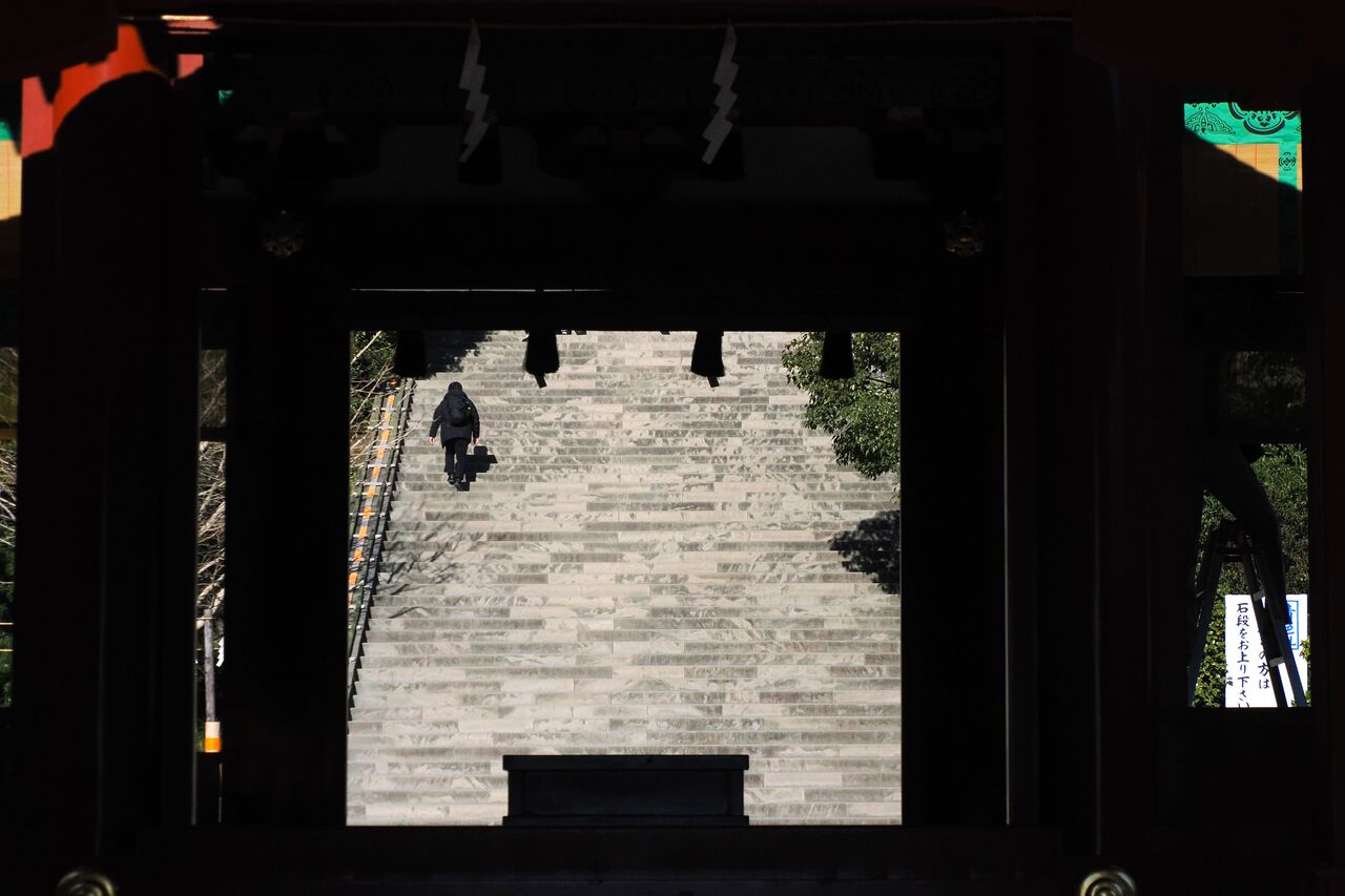石段を上り下りする人を額縁構図で狙えます。