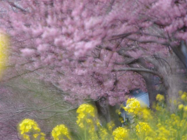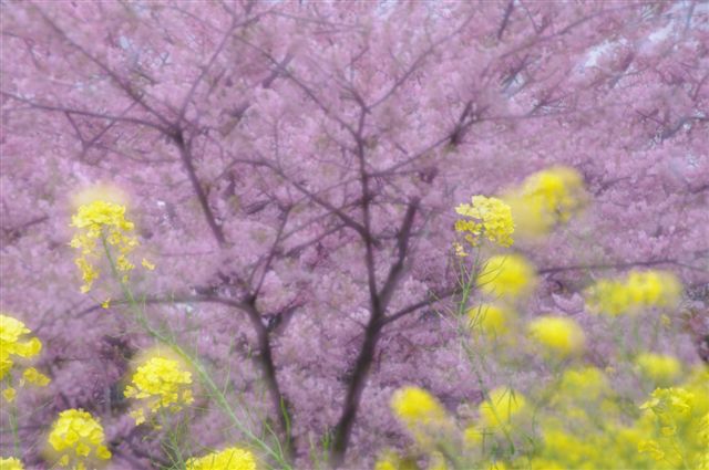 でも色のバランスとして、菜の花の一面の黄色をバックにピンクの桜を撮ると、どうも品のない感じになるのです。