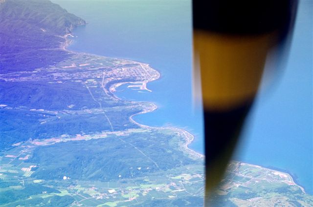 プロペラ機はジェット機よりもずっと低い高度で飛ぶので、天気が良いとまるで観覧飛行のような感じで下界を見ていて飽きません。
