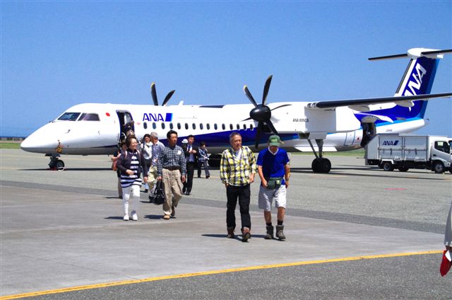 昔は国産機のYS11でしたが、かなりうるさくて機内も狭くて頭上の荷物置き場もなかったのですが、今のプロペラ機は約70人乗りながらも頭上も高くて、同規模の小型ジェット機よりもずっと快適です。