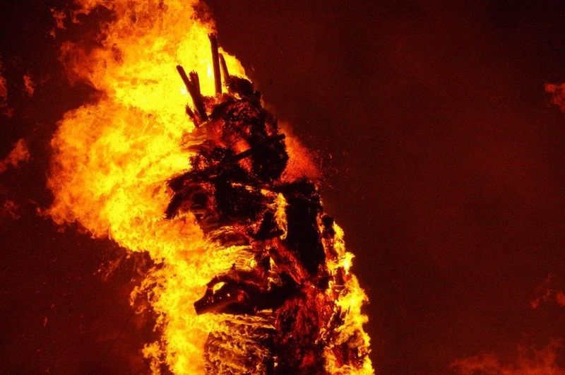 燃え盛る松明はどんどん表情を変えて、望遠レンズで迫ると、これなどはまるで鬼の顔。