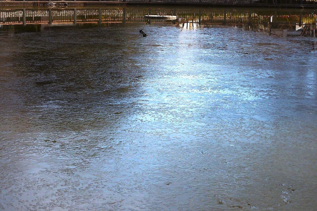 神社東側の池の水はまだ日差しが当たっていないので、一面薄い氷でした。大宮でも凍るんですな。