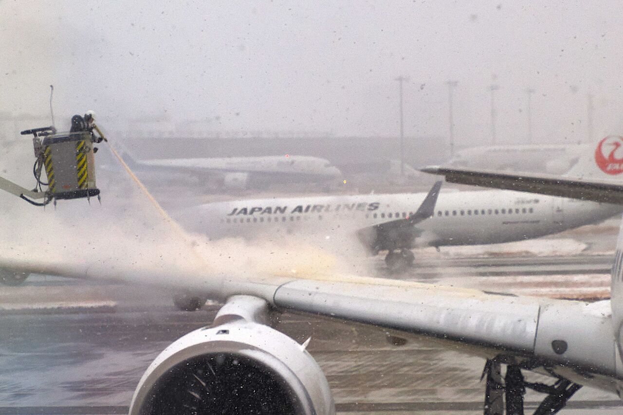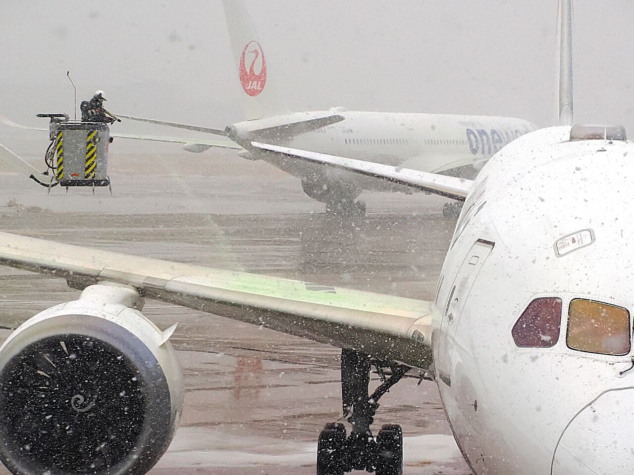 この機体はこれからフライトする便で、乗客を全員乗せた後に、機体に着雪防止剤や氷結防止剤を吹き付けているらしいのでした。