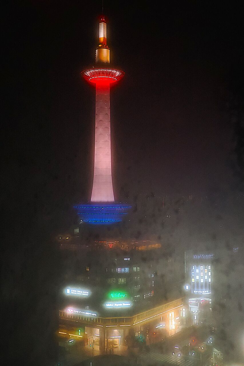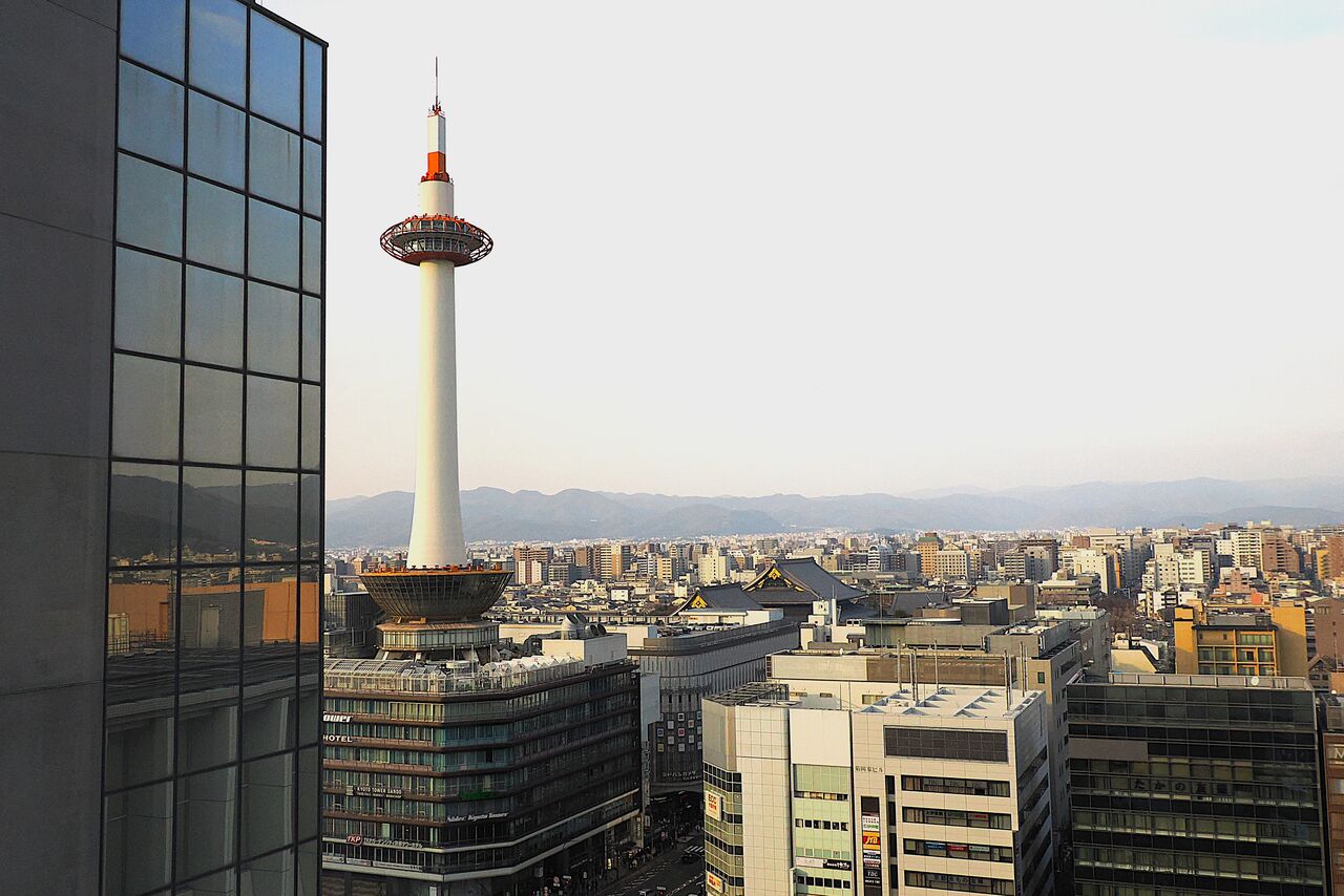 というわけで、今回宿泊した駅ホテルはタワービューの部屋。部屋の窓からギリギリ京都タワーが見えて、そのすぐ先には東本願寺の大きな屋根。