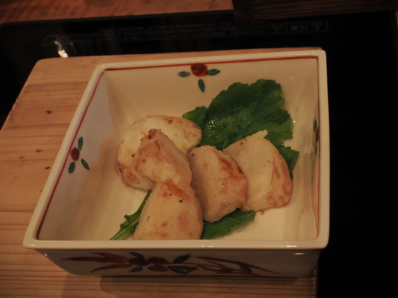 小カブの唐揚げ。柚子胡椒がかかっているのでさっぱりです。