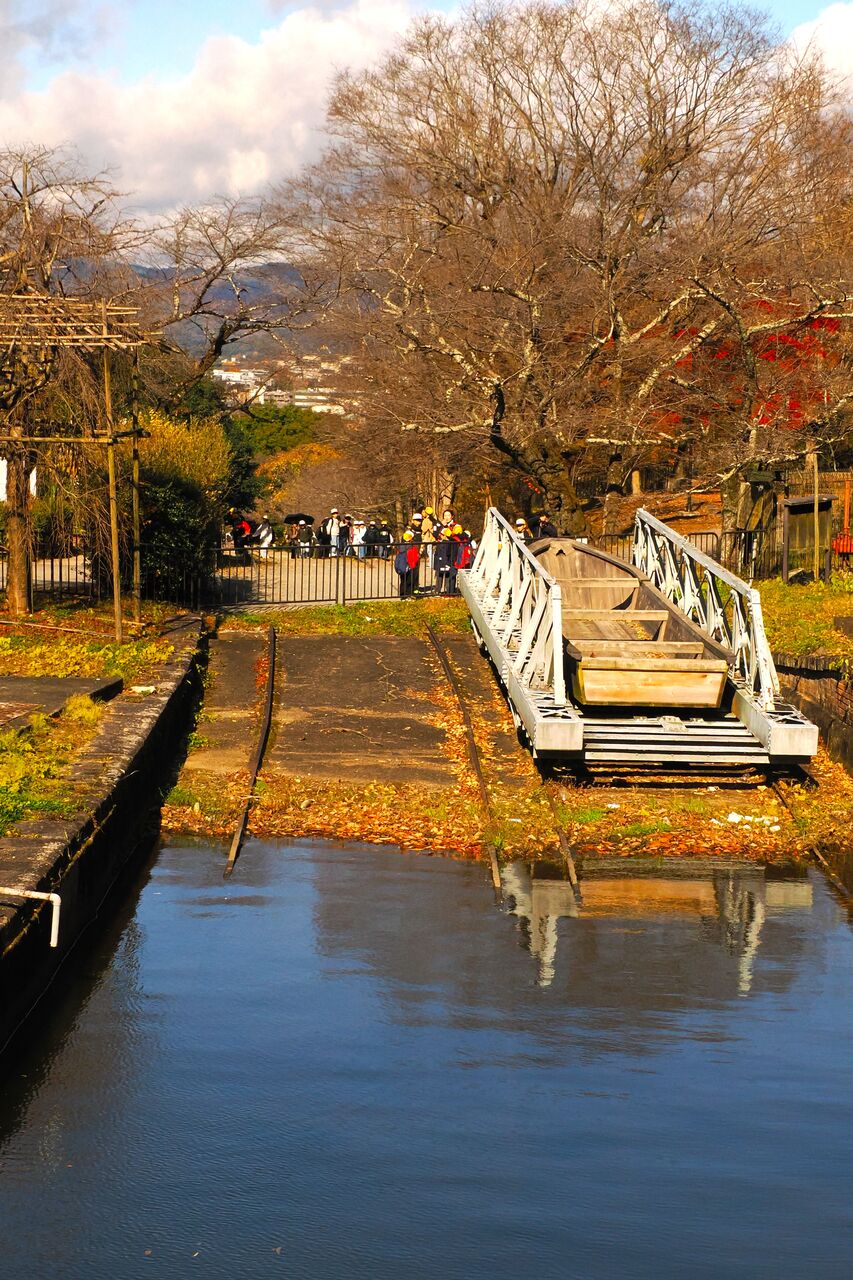 琵琶湖疎水はここまで引かれて、水は水路閣へながれ、荷物を積んだ船はここから台車に乗せられて京都の街の中まで坂道を下りていくわけです。