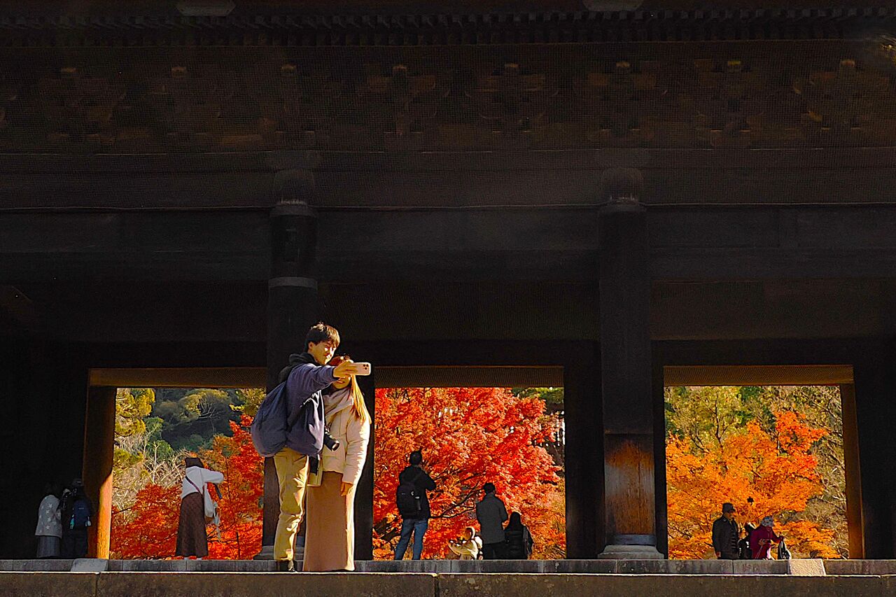 やはり南禅寺三門は撮影ポイントでとりあえずの1枚はここから始まるわけですが、無人の状態で撮るのは無理なので、それぞれの窓に人を配して、とりあえずの1枚にしてみました。