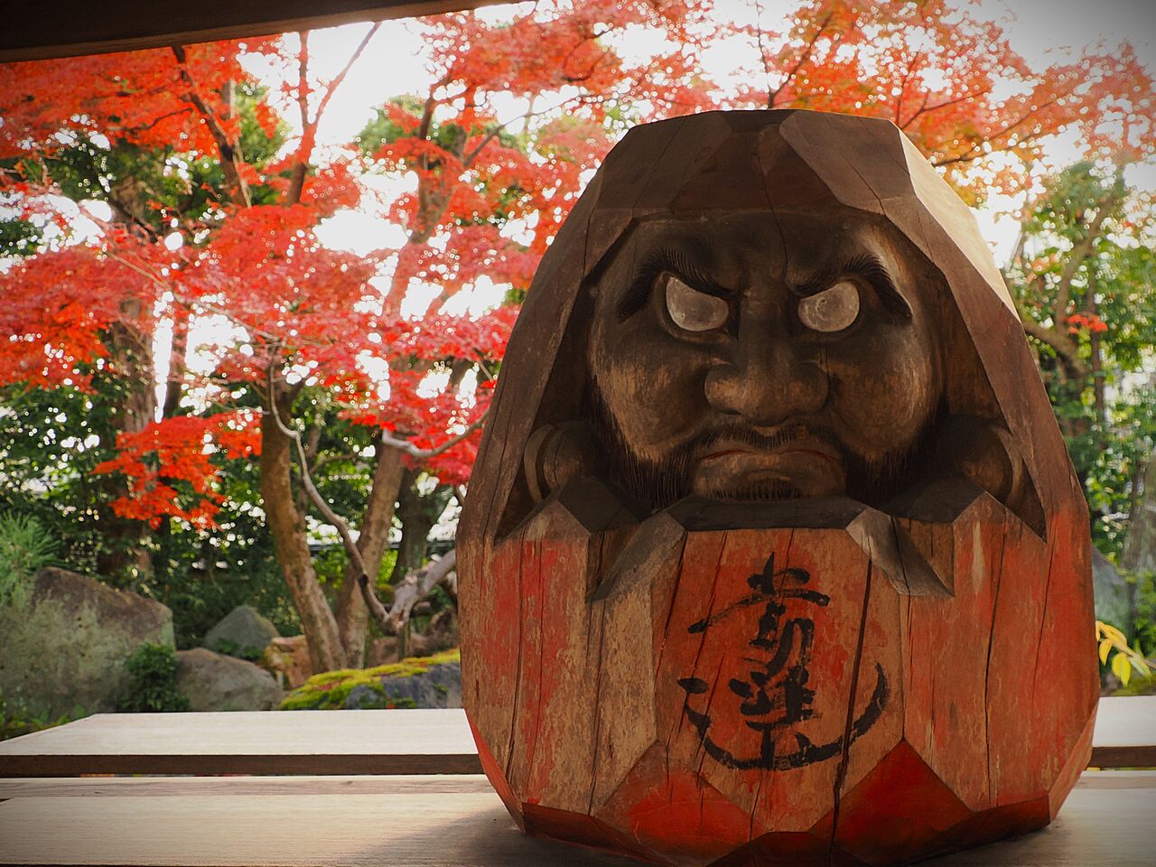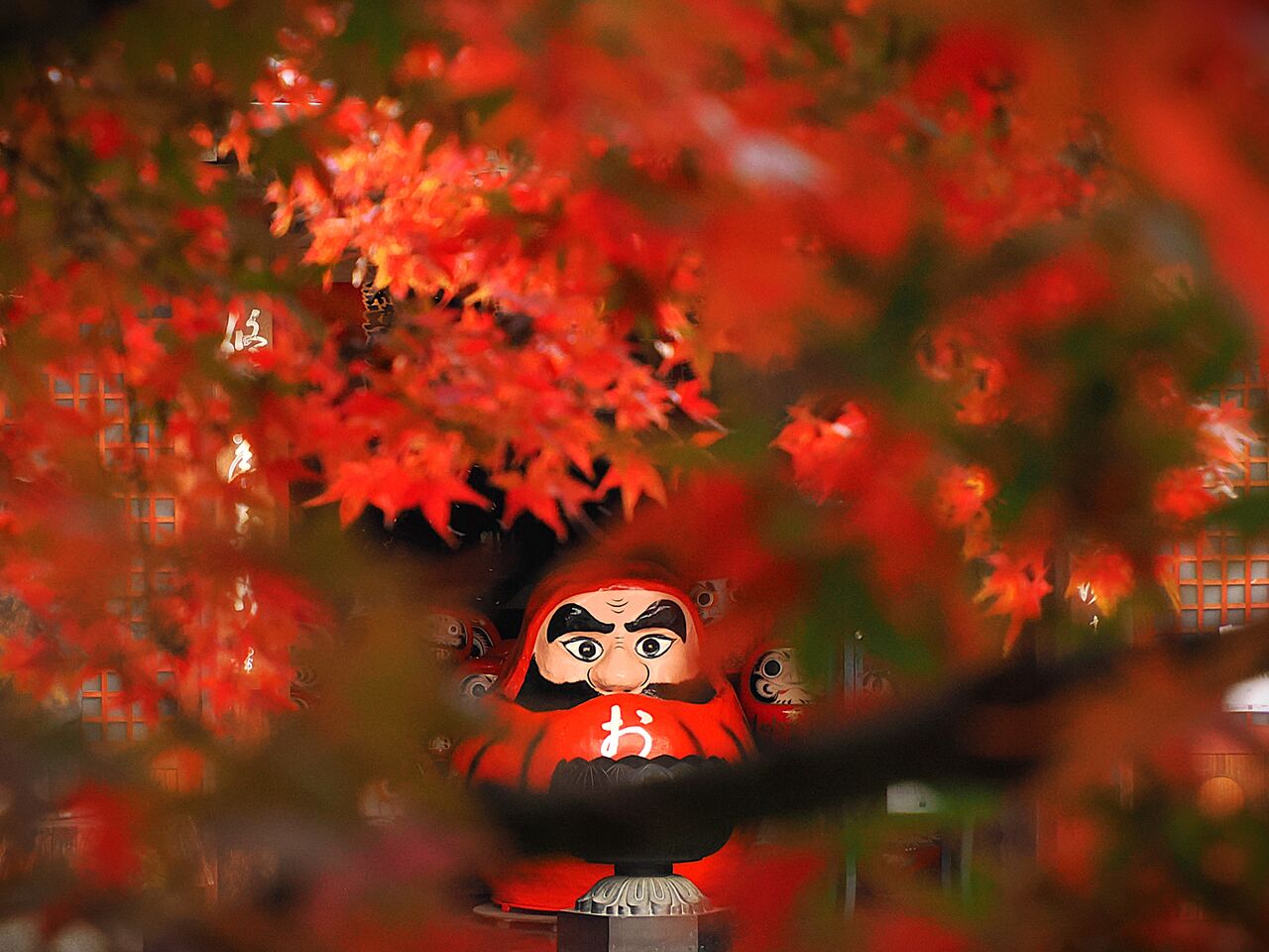 文字通りの達磨堂には、様々な大小の達磨がいっぱいでしたが、紅葉の間からこっそりとパチリ。