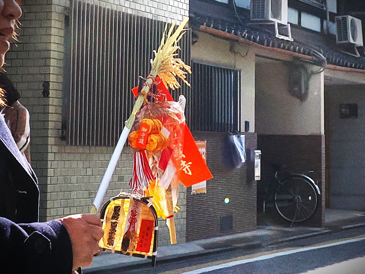 ミカンがちょっと黒ずんでいたりいびつだったり、そんなミカンが刺してありましたが、これも京都のもったいない無駄を出さない文化なんでしょうか。