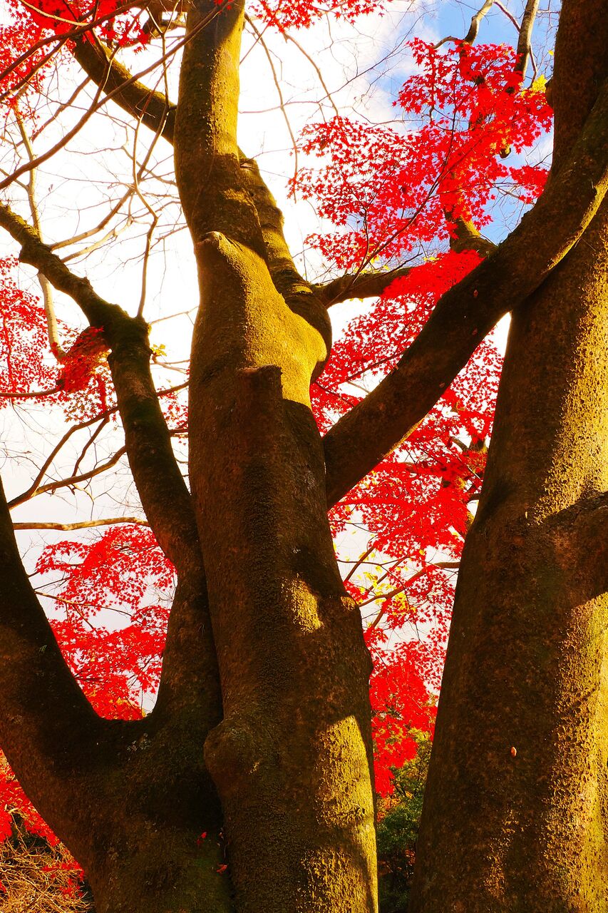 近くの真っ赤なモミジ、紅葉の中ではこの種類のモミジの紅葉がピカイチです。