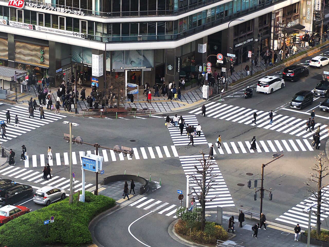 京都駅前のスクランブル交差点は、一大観光地なのに人があまり横断しません。
