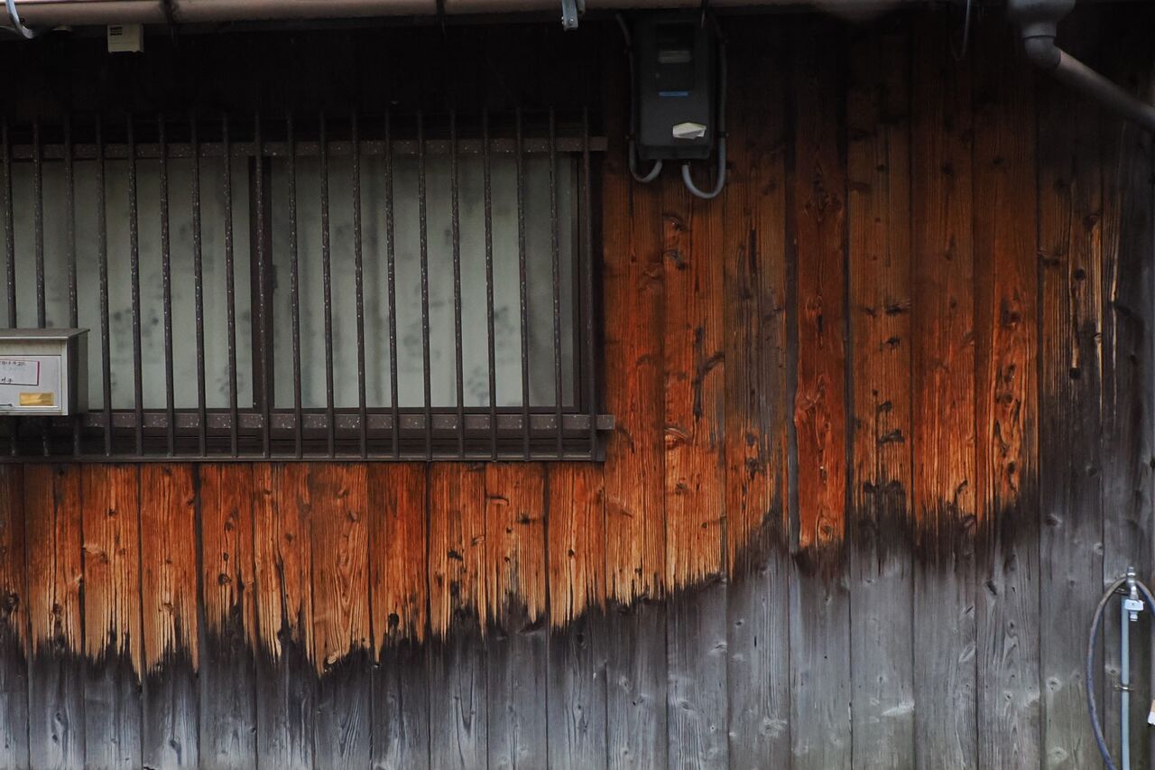 板壁の住宅も水が染み込んで変色。これが雪国だったら数年で腐ってきますな。