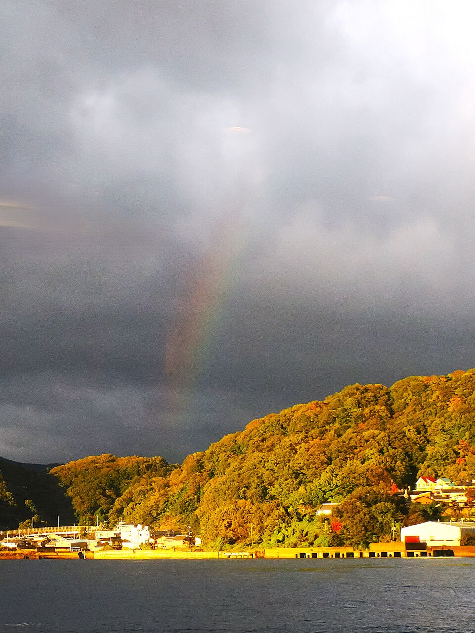 反対側の陸地にも日が当たって、虹も少し見えてきました。